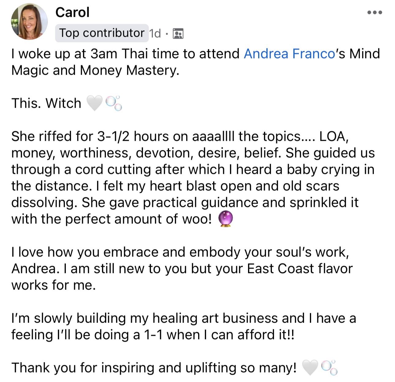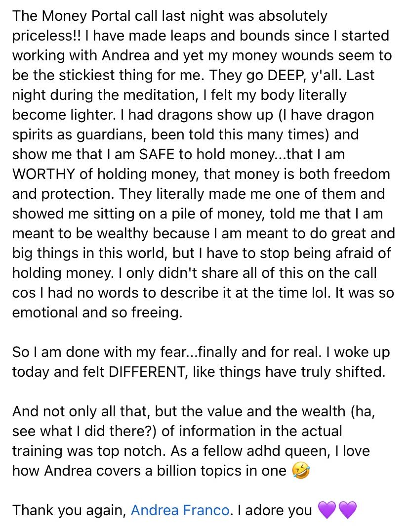 With my guidance, my clients, yes, have generated massive financial freedom but it goes so much deeper than that. They walk away with true healing. A renewed sense of personal power, and a deep connection to their intuition.